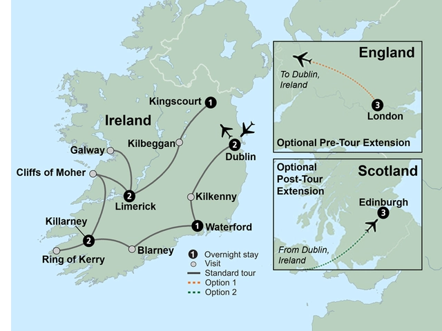 Anticipation mounts as you make your way toward the Emerald Isle and its many wonders. Rich history, rolling hills and warm smiles lie ahead in Dublin, Waterford, Killarney and Limerick. With tomorrow comes quintessential Ireland.
