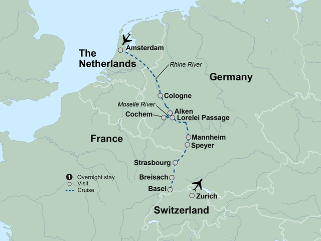 Discover a dramatic waterway where winding valleys give way to riverside cities and Alpine hamlets. Venture along the Rhine and Moselle and spend time in beloved European cities, getting a taste of the local culture at each stop along the way.